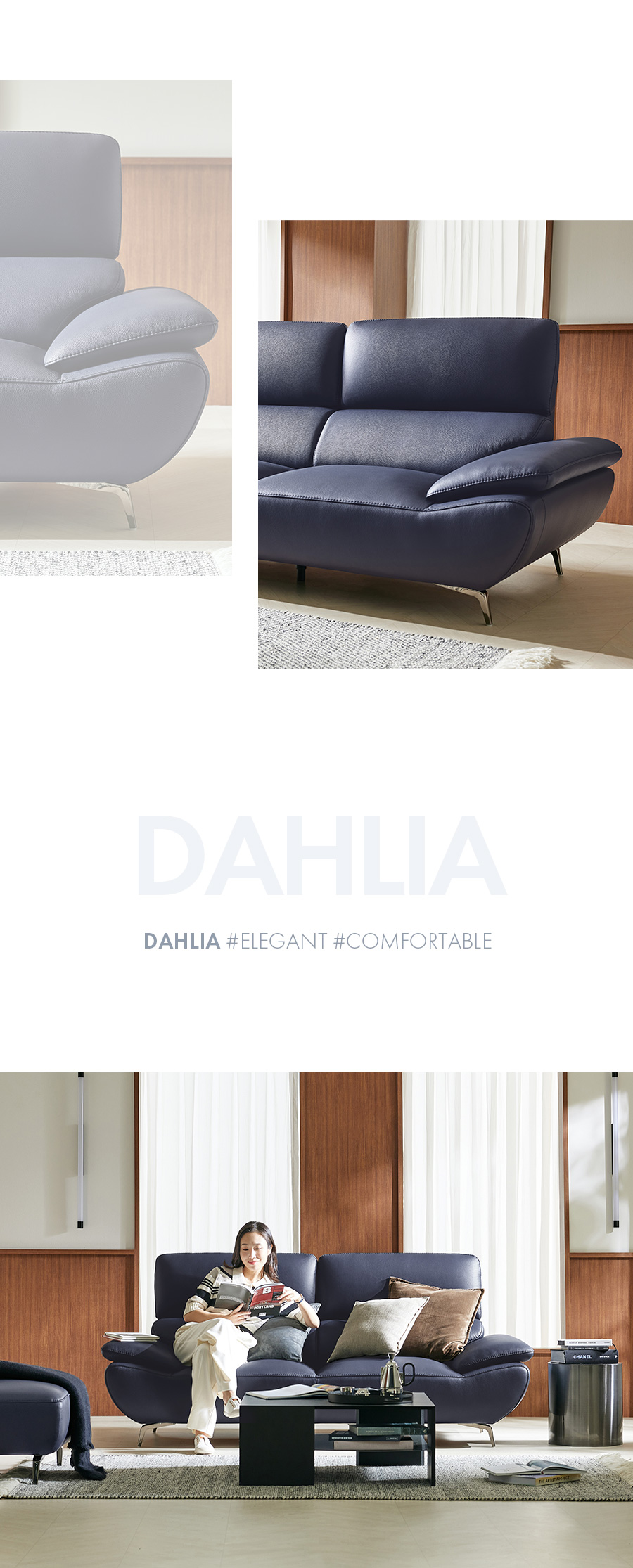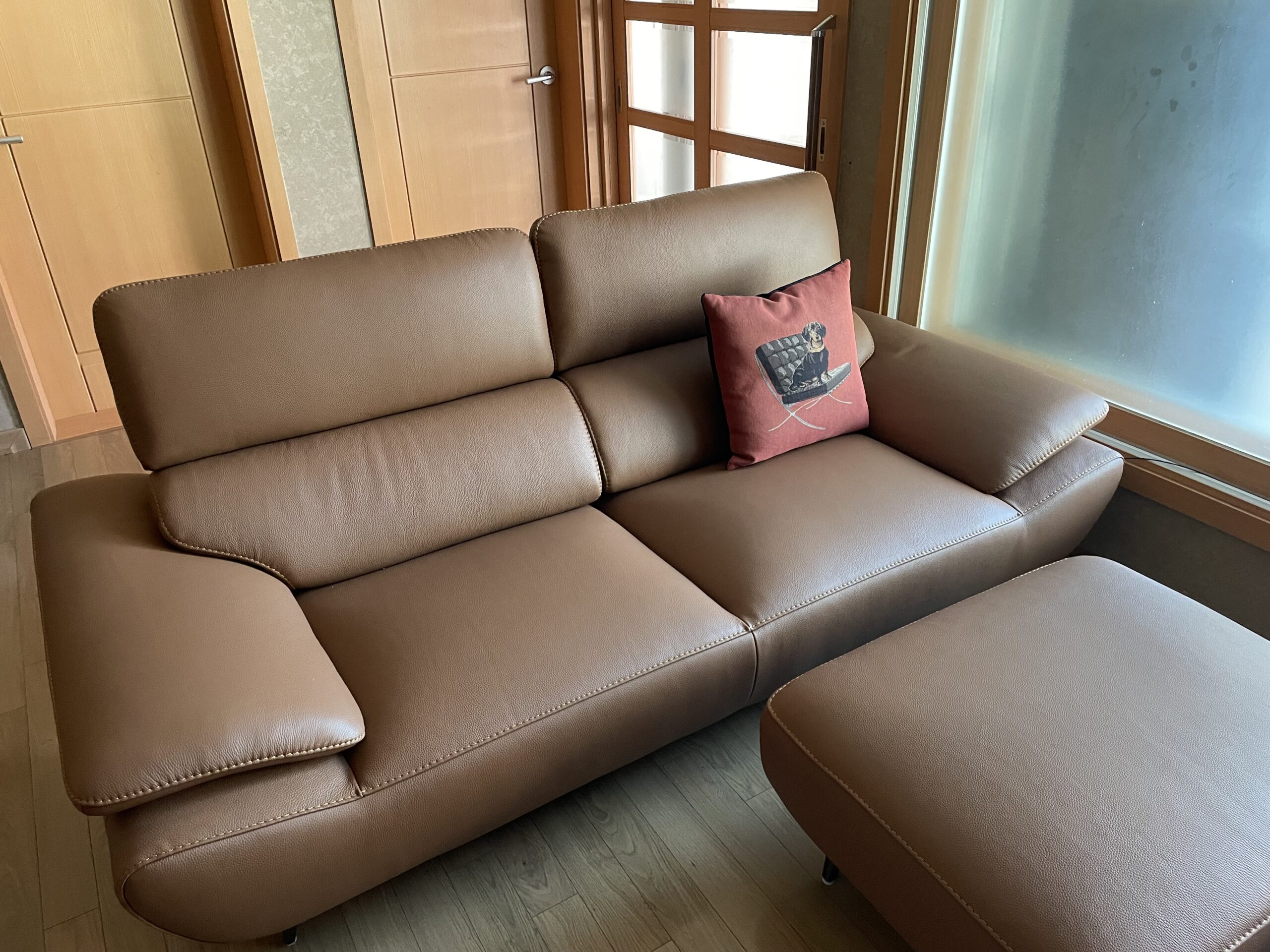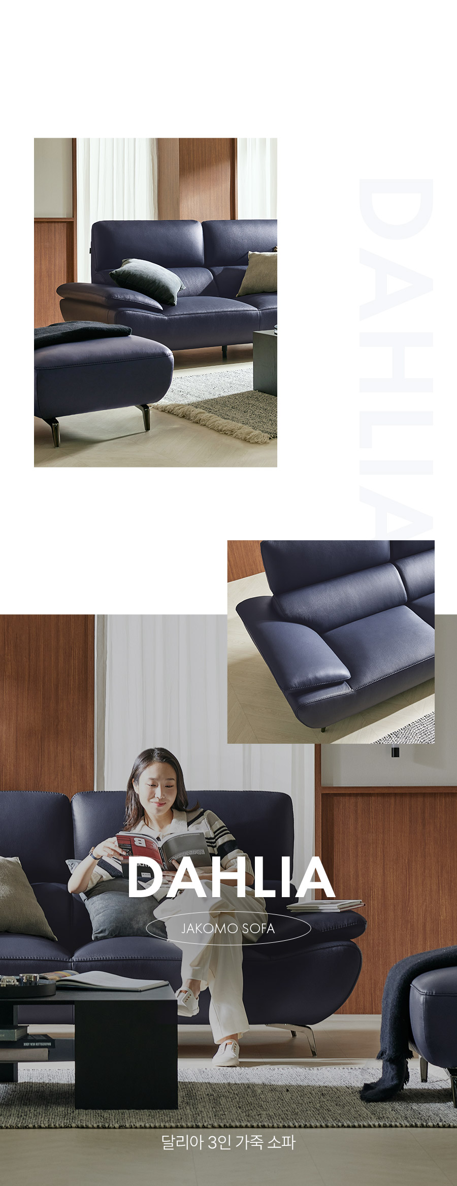Ảnh nhà khách Ghế sofa 3 chỗ ngồi Dahlia Vitello bọc da bò tự nhiên co rút hoàn toàn