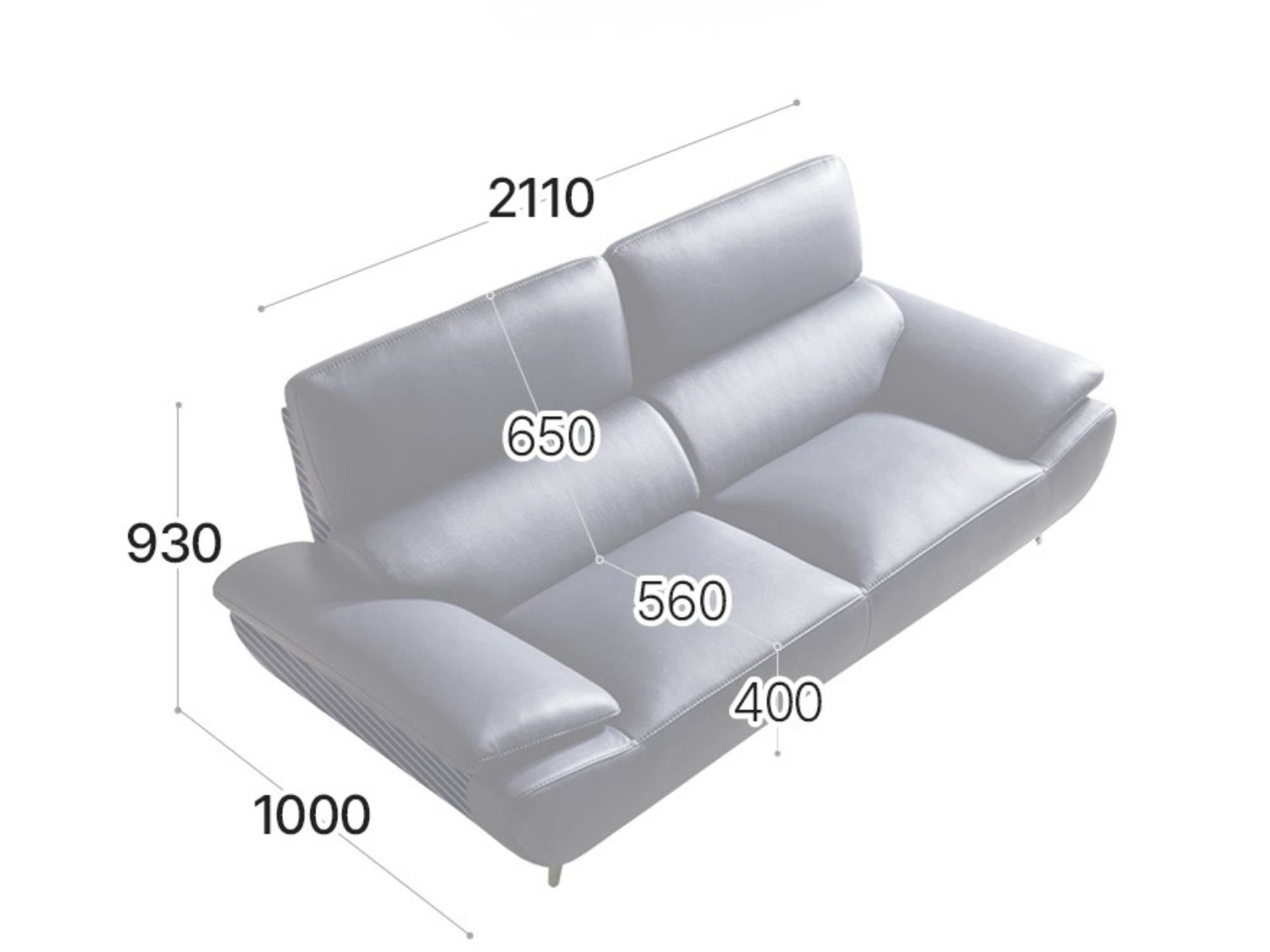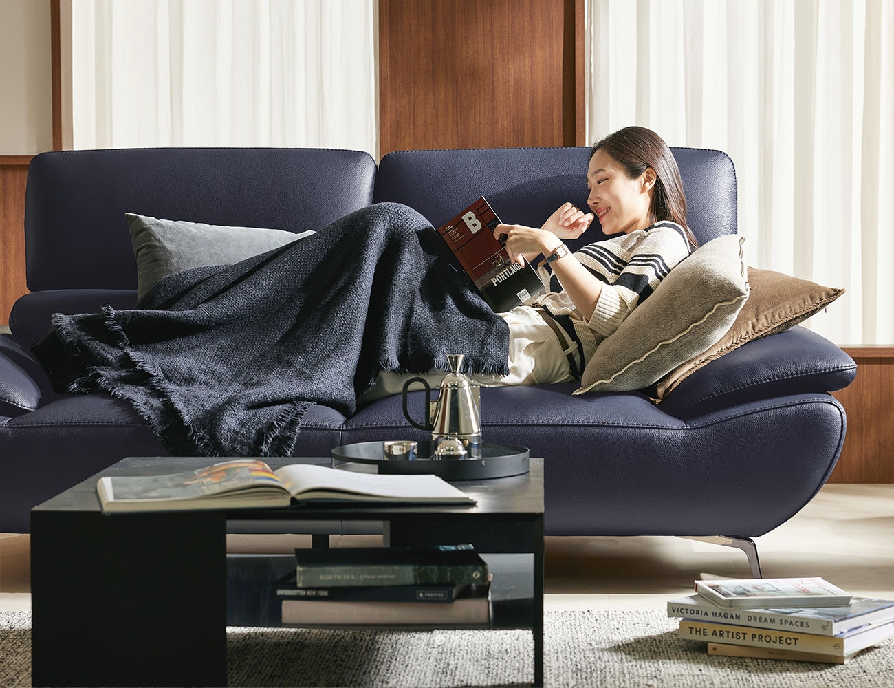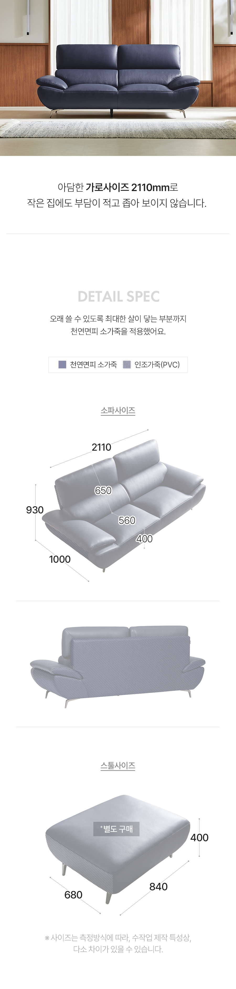Ảnh nhà khách Ghế sofa 3 chỗ ngồi Dahlia Vitello bọc da bò tự nhiên co rút hoàn toàn