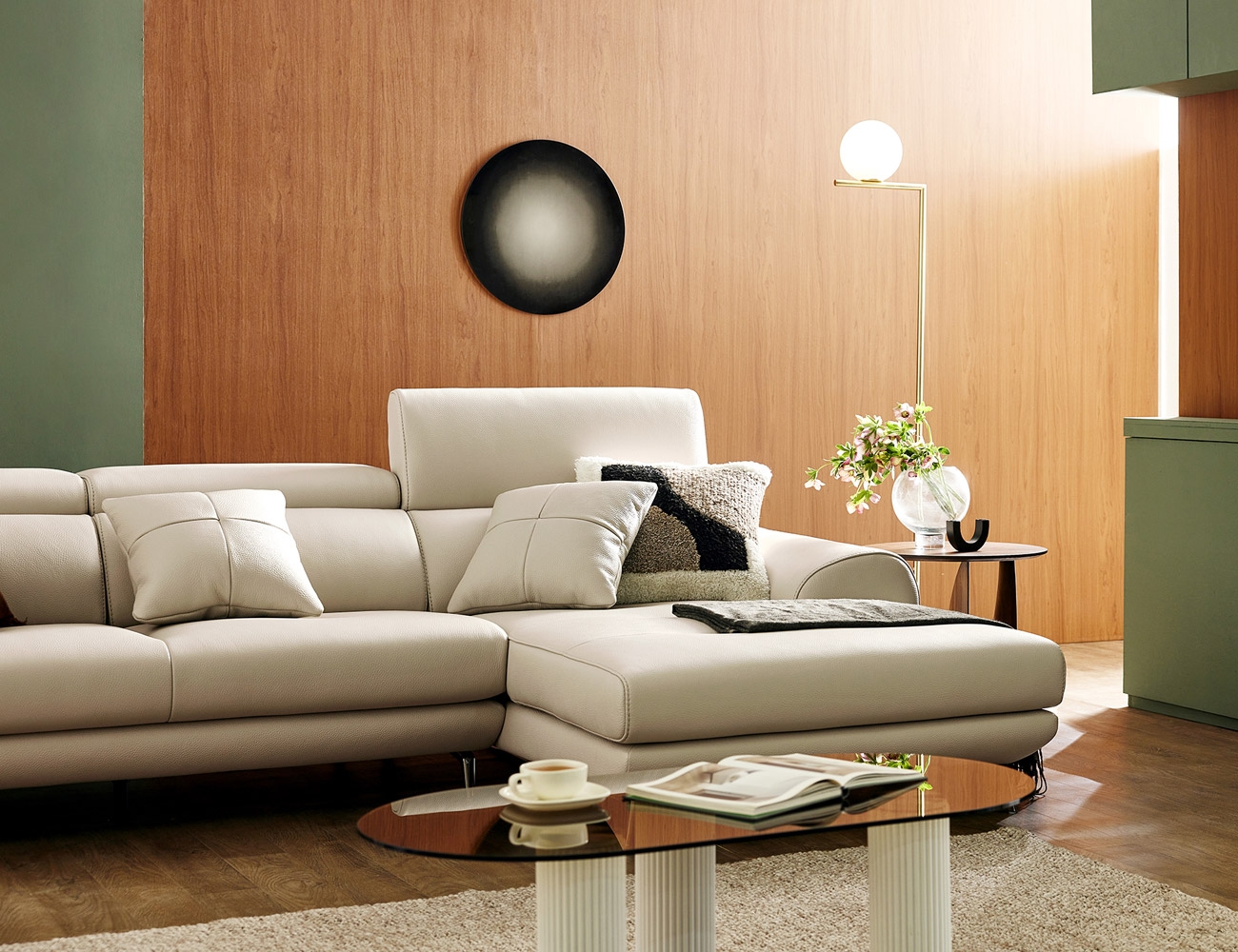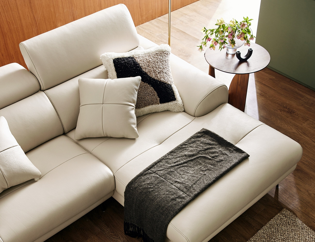 Ảnh nhà khách Ghế sofa da bò nguyên tấm sang trọng kiểu ghế dài Lydia 4 chỗ + 2 đệm