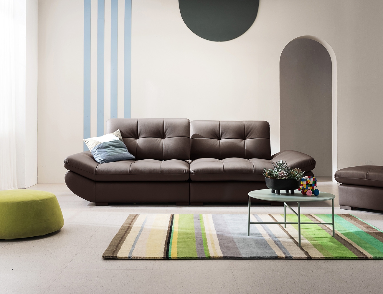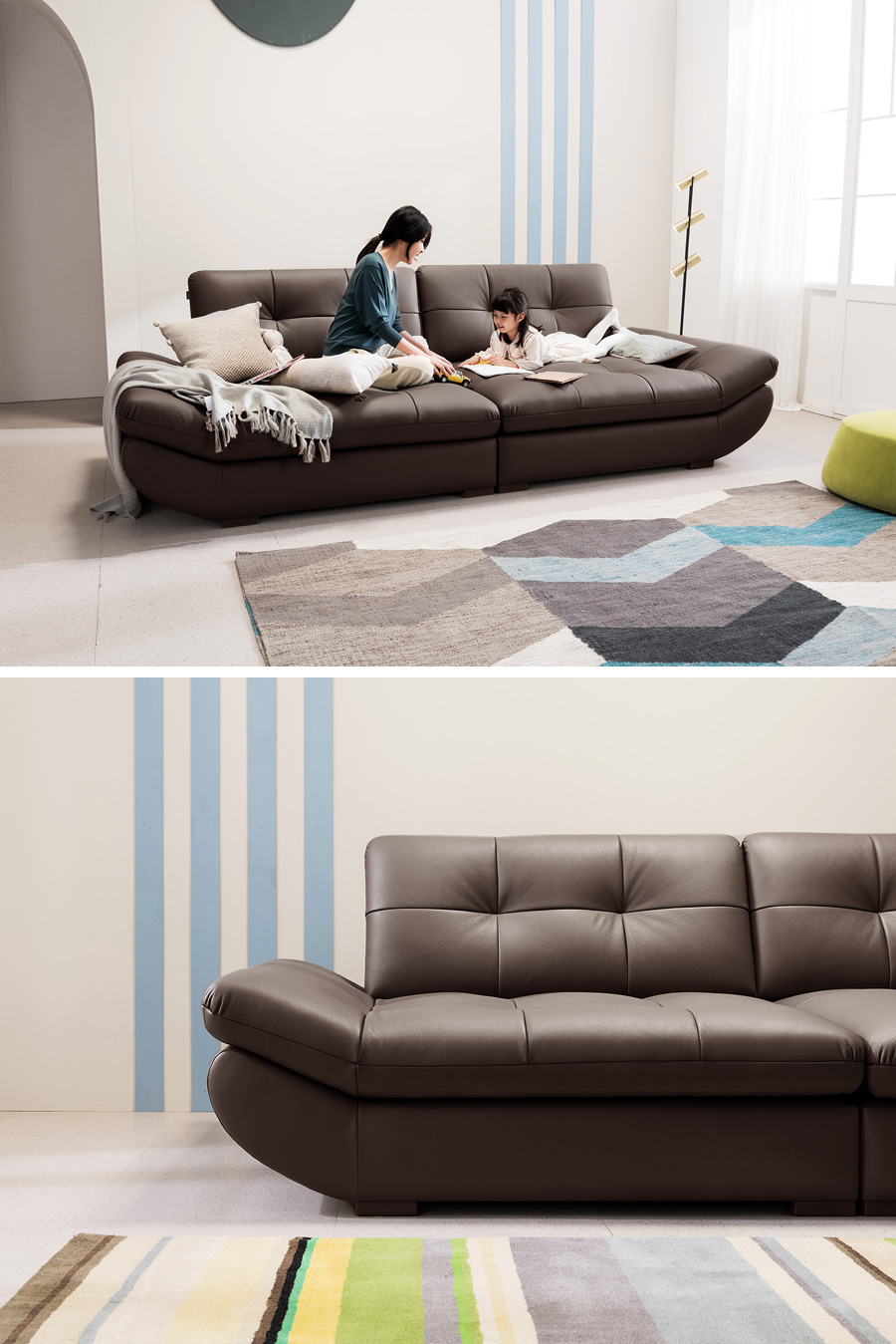 Ảnh nhà khách Ghế sofa da bò tự nhiên đa năng Bubble Swing 3,5 chỗ ngồi