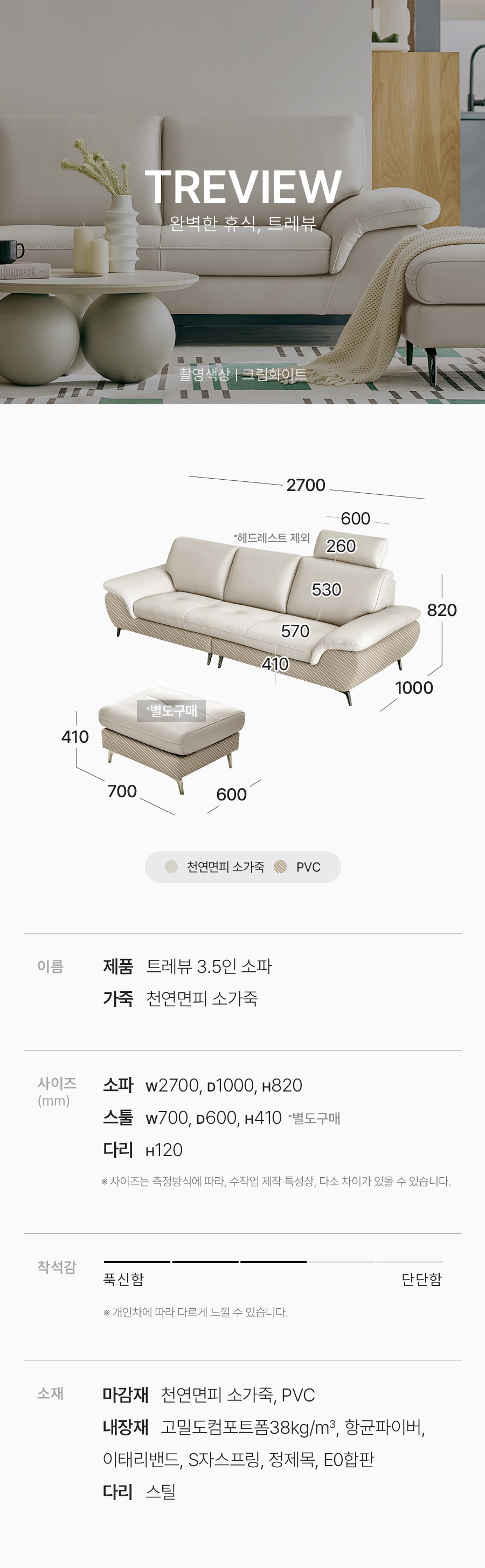 Ghế sofa da bò tự nhiên cơ bản có độ dày 3.5mm